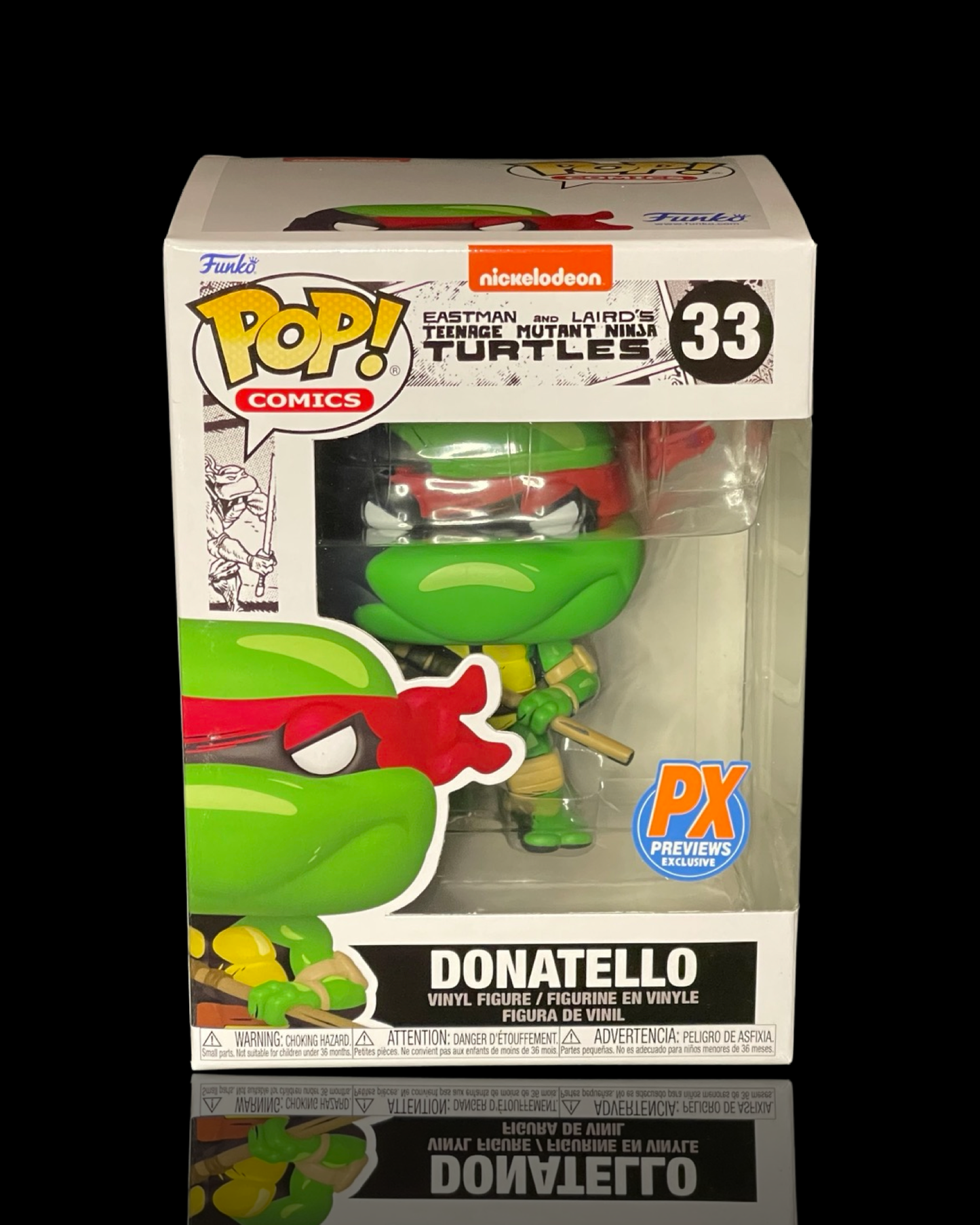 Donatello is on his way into your Pop! collection. Inspired by the now legendary comics phenomenon that took the world by storm, Eastman and Laird's Teenage Mutant Ninja Turtles character is showcased with a stylized look that comes straight off the page! Donatello comes to life in your collection with a comics-inspired cell-shaded design. Equipped with his bo staff, Donnie wears the classic red bandanna. Plus, this exclusive Pop! figure features a black-and-white chase variant for that classic indie comic look. This Teenage Mutant Ninja Turtles Comic Donatello Pop! Vinyl Figure - Previews Exclusive stands about 3 3/4-inches tall and comes packaged in a collector-friendly window box. Order yours while supplies last!