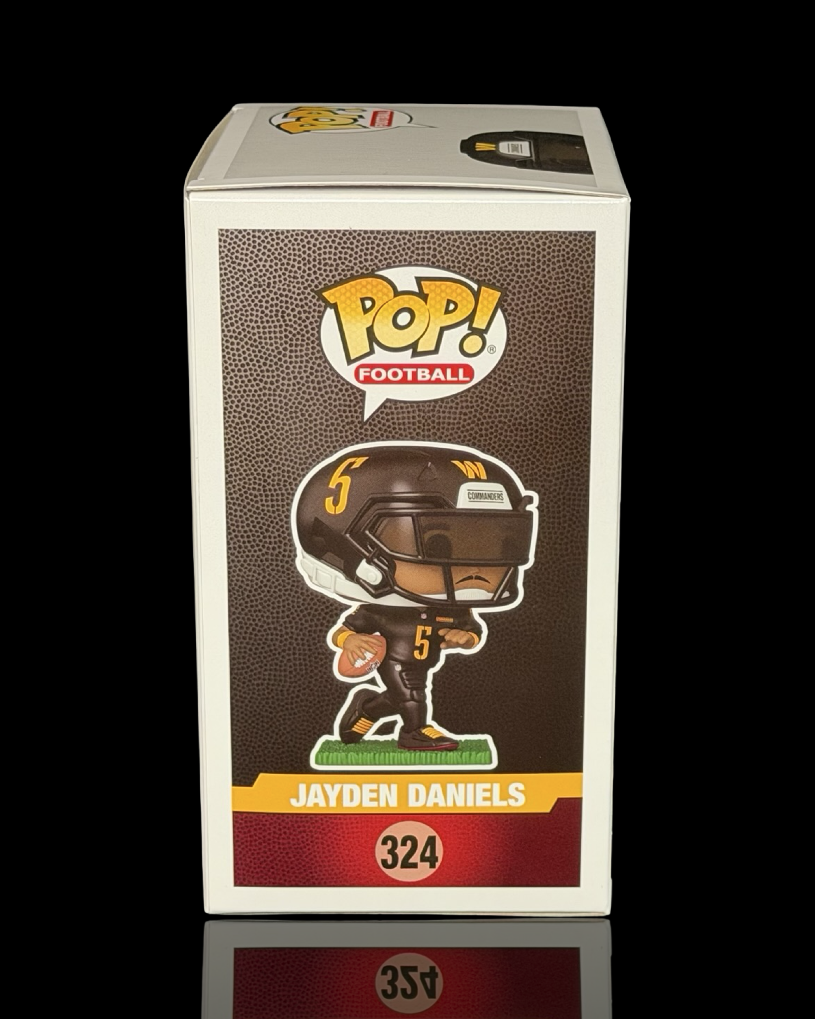 Draft Jayden Daniels, quarterback for the Washington Commanders, to your NFL Funko Pop! collection featuring his black uniform! Which team will Jayden Daniels and the Commanders play next in your football set? This NFL Commanders Jayden Daniels Funko Pop! Vinyl Figure #324 measures approximately 4-inches tall and comes packaged in a window display box. For ages 3 and up.